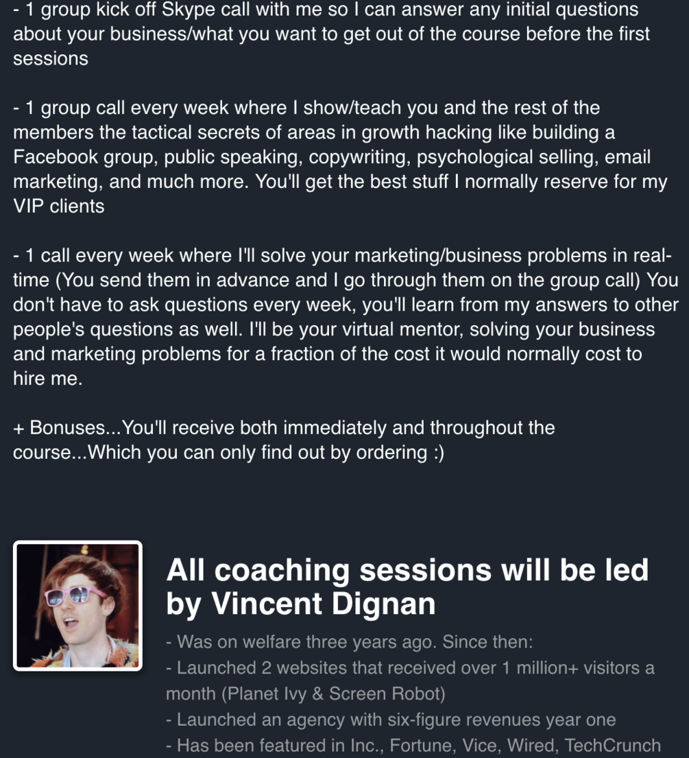 There will also be special one-off weeks where I give full feedback on your landing page and your social media channels.